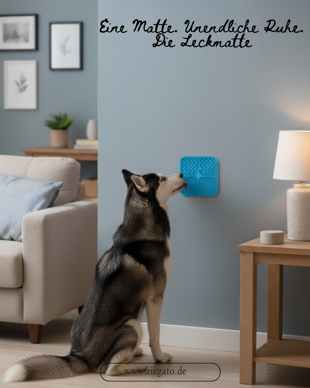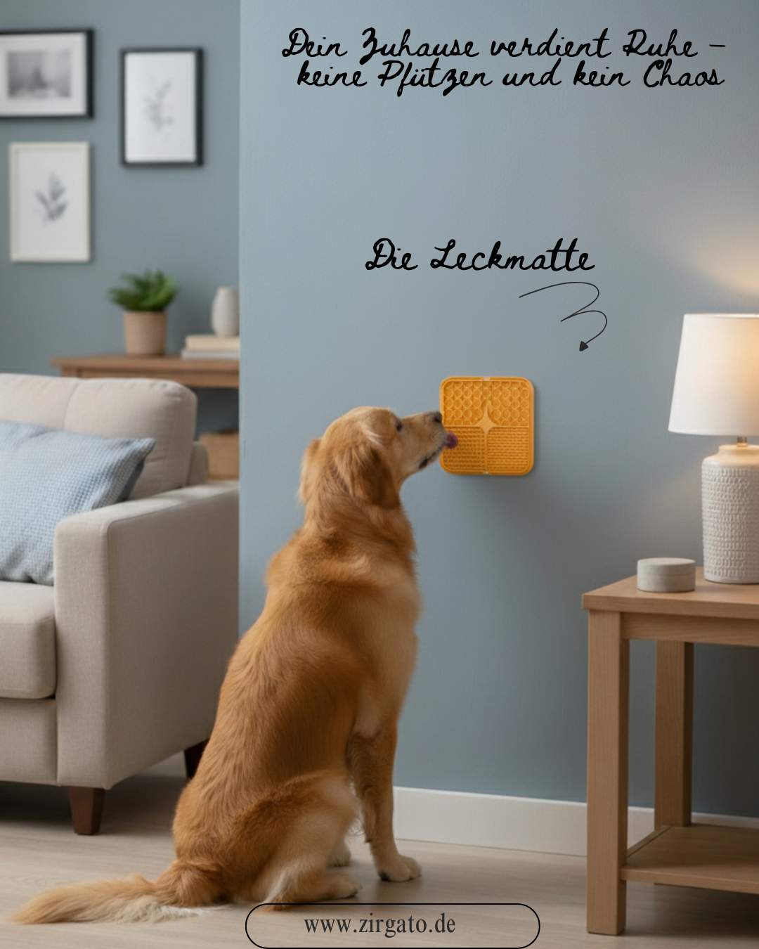 Mit der LeckMatte™ wird alles einfacher: Sie haftet sicher, hält deinen Hund ruhig und lässt sich danach ganz leicht reinigen.