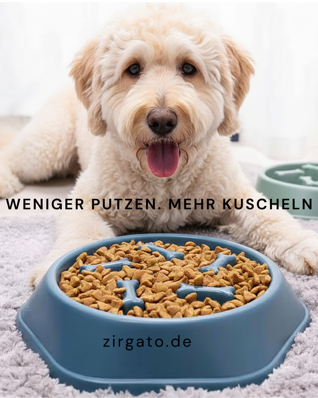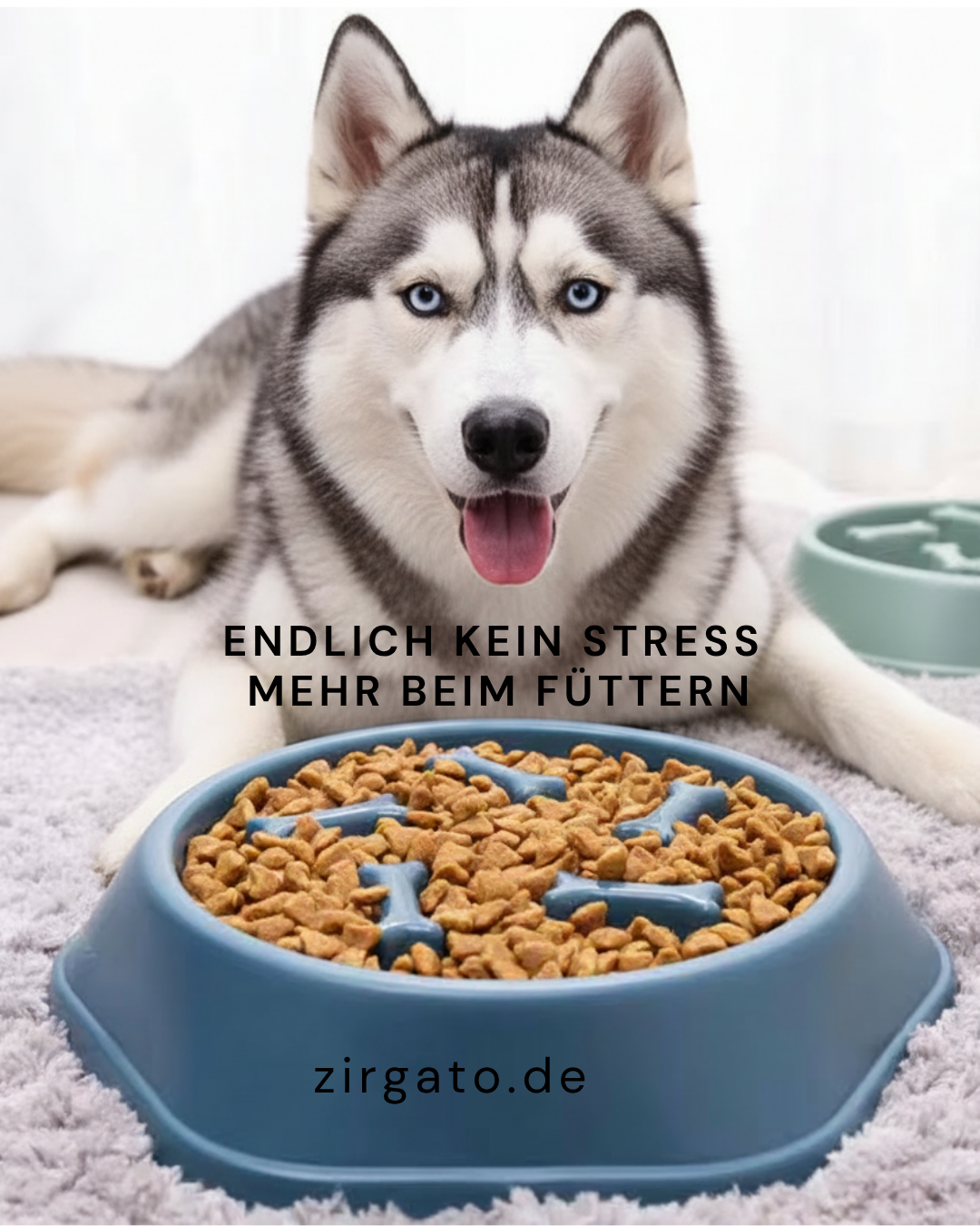 Ein Napf mit Hindernissen, die das Fressen verlangsamen und somit Verdauungsprobleme verhindern.